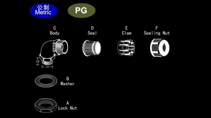 Materials: UL approved Nylon PA66 (Flammability UL 94V-2) for A. C. E. F parts, (Accept to make flammability UL 94V-0 ); EPDM rubber for B. D parts, (Also accept to make super rubber: resist high temperature rubber, resist strong acid/ alkali, etc ).