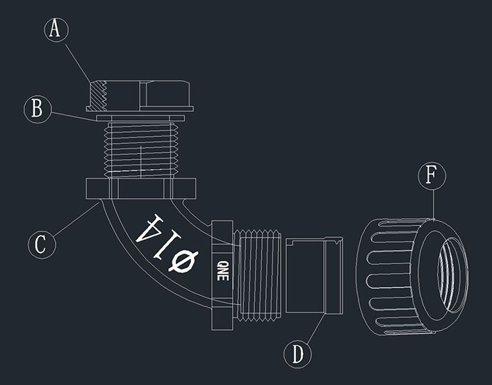 Features: This super high tensile 90 degree bend type connector can be fixed according to the established angle of the conduit, and greatly reduce the space required for bending, but also to prevent excessive bending of the conduit caused by damage or shorten the life of the cable, as well as protect the cable bending parts.