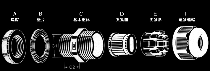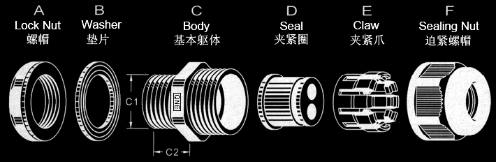 ·产品特性:特殊夹紧爪与夹紧圈之设计,夹紧电缆范围大,抗拉力特强,可防水、防尘、抗盐、耐弱酸、酒精、油、油脂及一般溶剂。