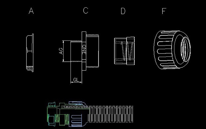 ·适用范围: 可结合自 5/16" 到 2" 之被覆金属蛇管规格使用。