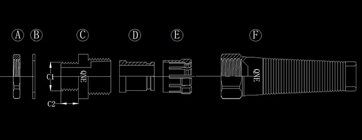 ·产品材质: A.C.F(组合铜加弹簧钢)部分以黄铜镀镍制成,E部分以UL认可之尼龙PA66制成(防火等级UL94V-2),BD部分采用EPDM耐候橡胶制成。(可定制耐寒、耐高温橡胶;耐高酸碱、耐化学与抗腐蚀橡胶)。